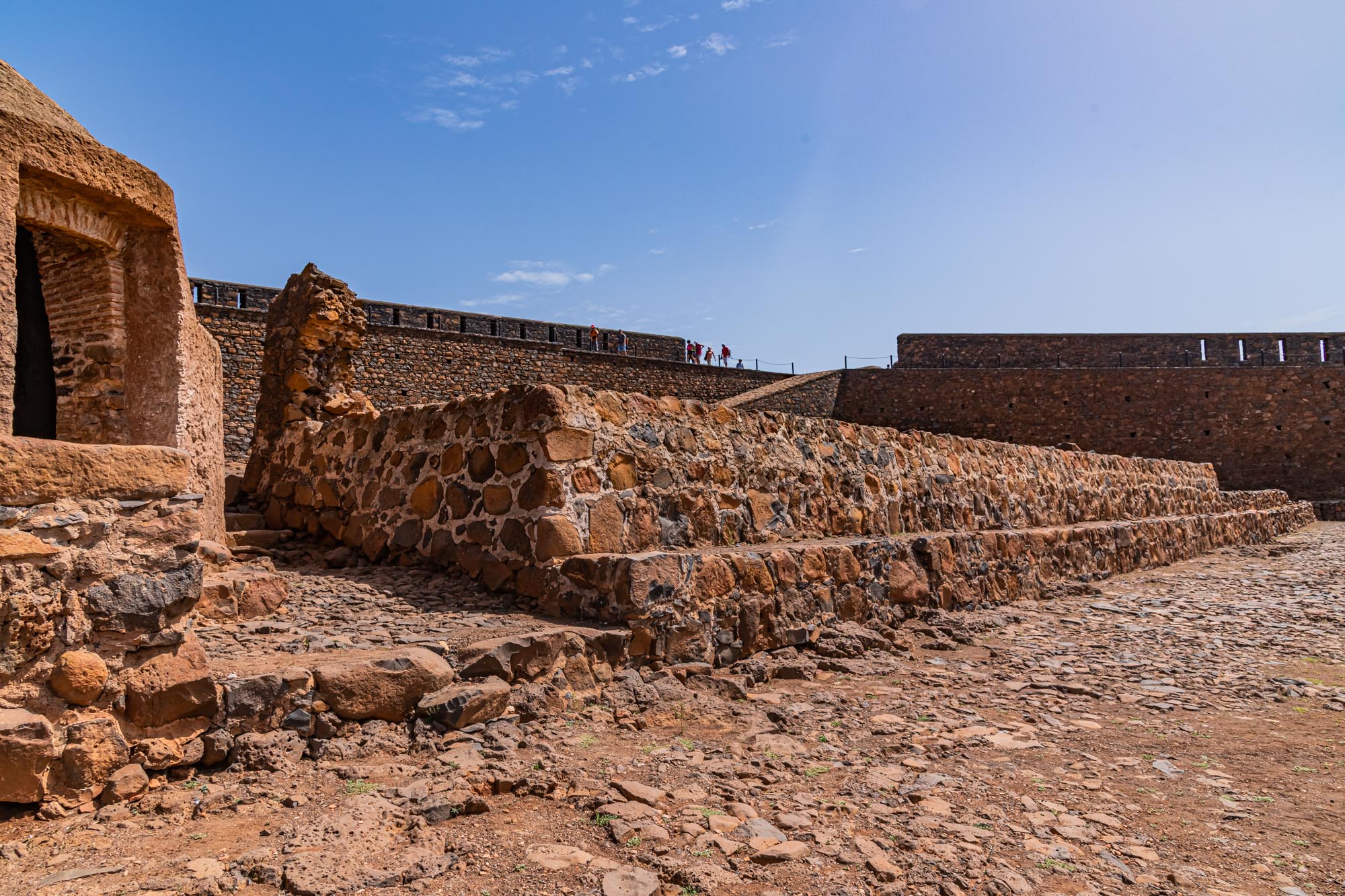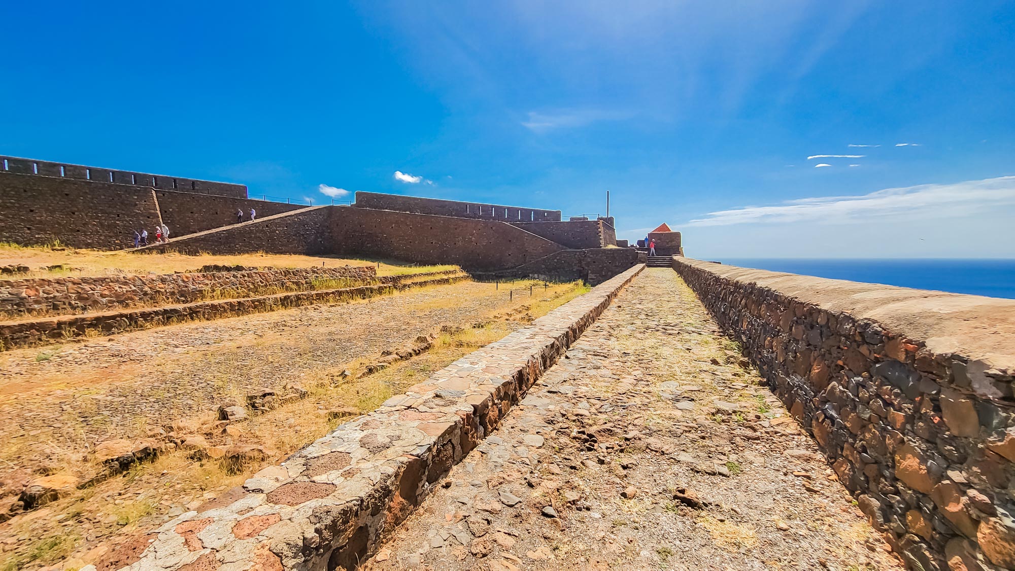 Heute sind nur noch Mauerreste und Grundrisse sichtbar, doch sie vermitteln ein eindrucksvolles Bild der Enge und Zweckmäßigkeit. Diese Überreste machen deutlich, dass das Forte Real de São Filipe nicht als repräsentativer Bau gedacht war, sondern als funktionierendes militärisches System, in dem jeder Quadratmeter einem klaren Zweck diente.