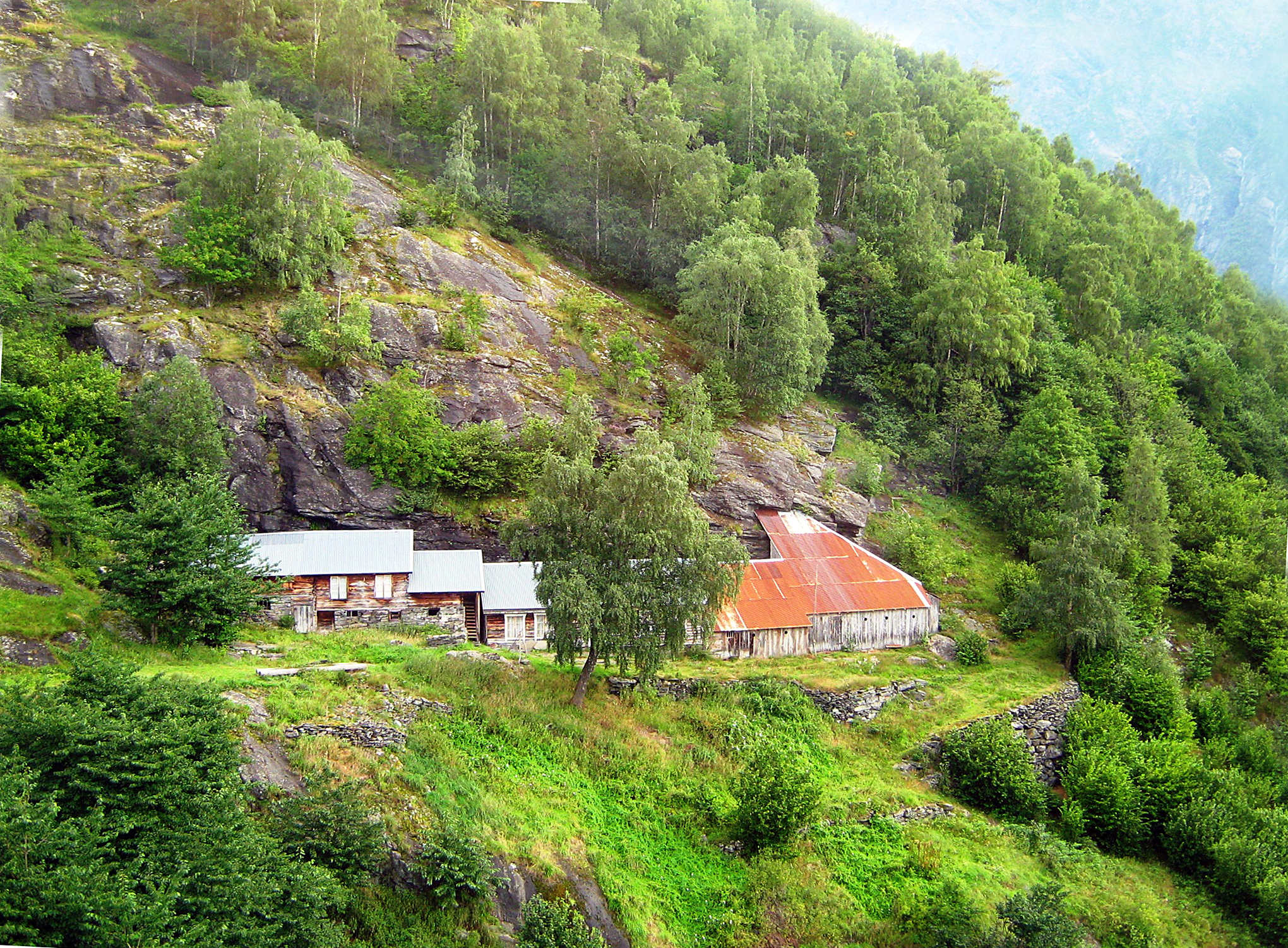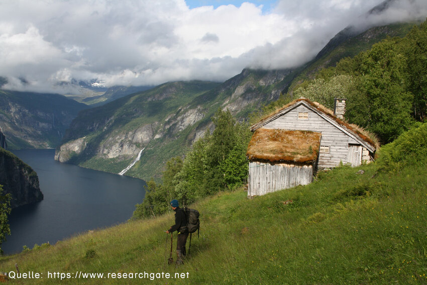 Die steilen Felswände und schmalen Uferstreifen des Geirangerfjords wirken auf den ersten Blick kaum geeignet für menschliche Besiedlung. Dennoch haben über Jahrhunderte hinweg Bauernfamilien hier gelebt und gearbeitet. Auf schmalen Terrassen, hoch über dem Fjord oder direkt an seinen Ufern, entstanden kleine Bergbauernhöfe, die heute als wichtige Zeugnisse norwegischer Kulturgeschichte gelten. Viele dieser Höfe sind längst verlassen, doch sie erzählen eindrücklich vom entbehrungsreichen Leben am Fjord.