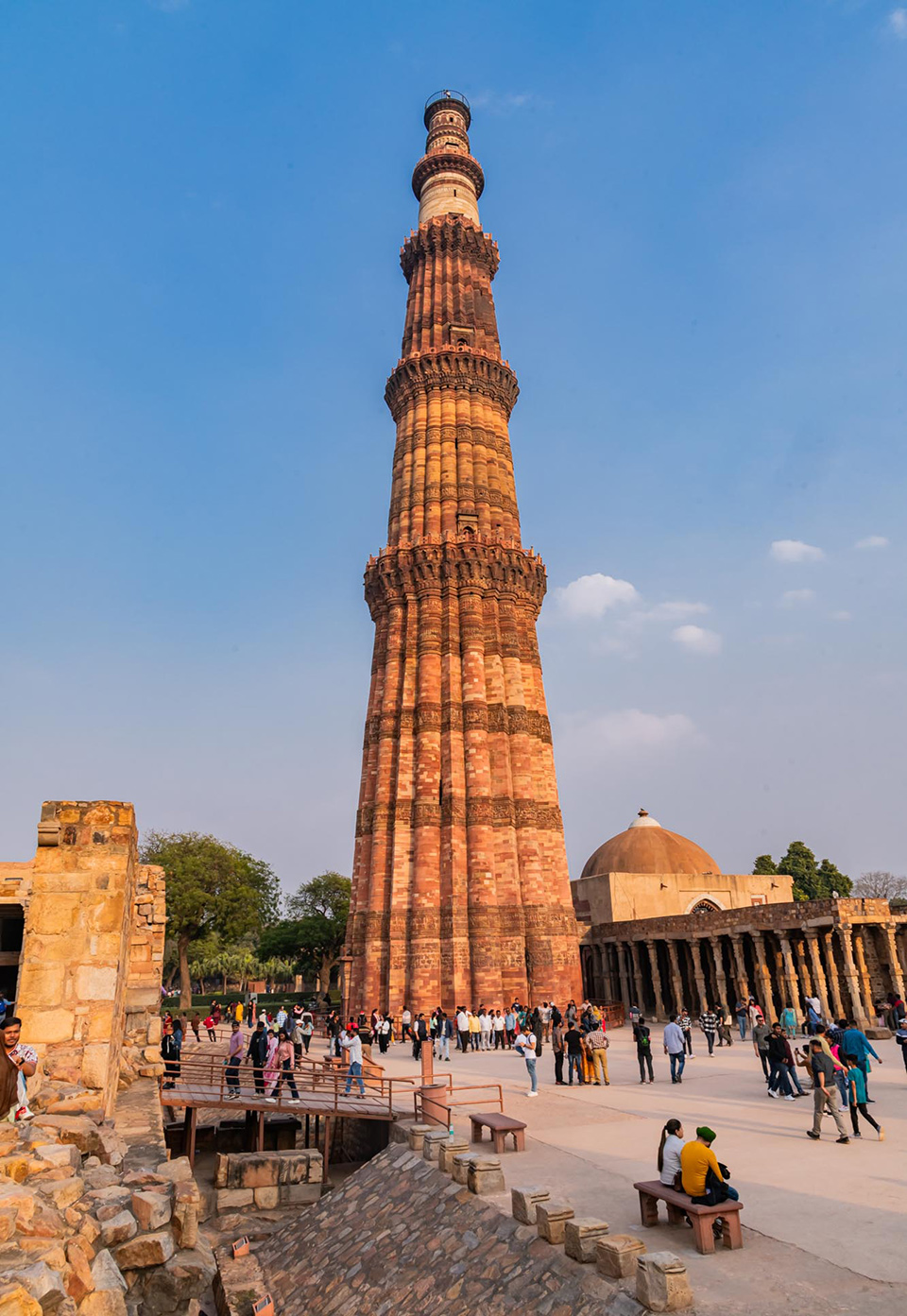- Indo-islamisch – Indien – Qutb Minar – Deutlich gestuft mit mehrteiligen Abschnitten und regelmäßigen Balkonen. Abwechselnd flache und runde Kanneluren erzeugen ein rhythmisches Profil.
