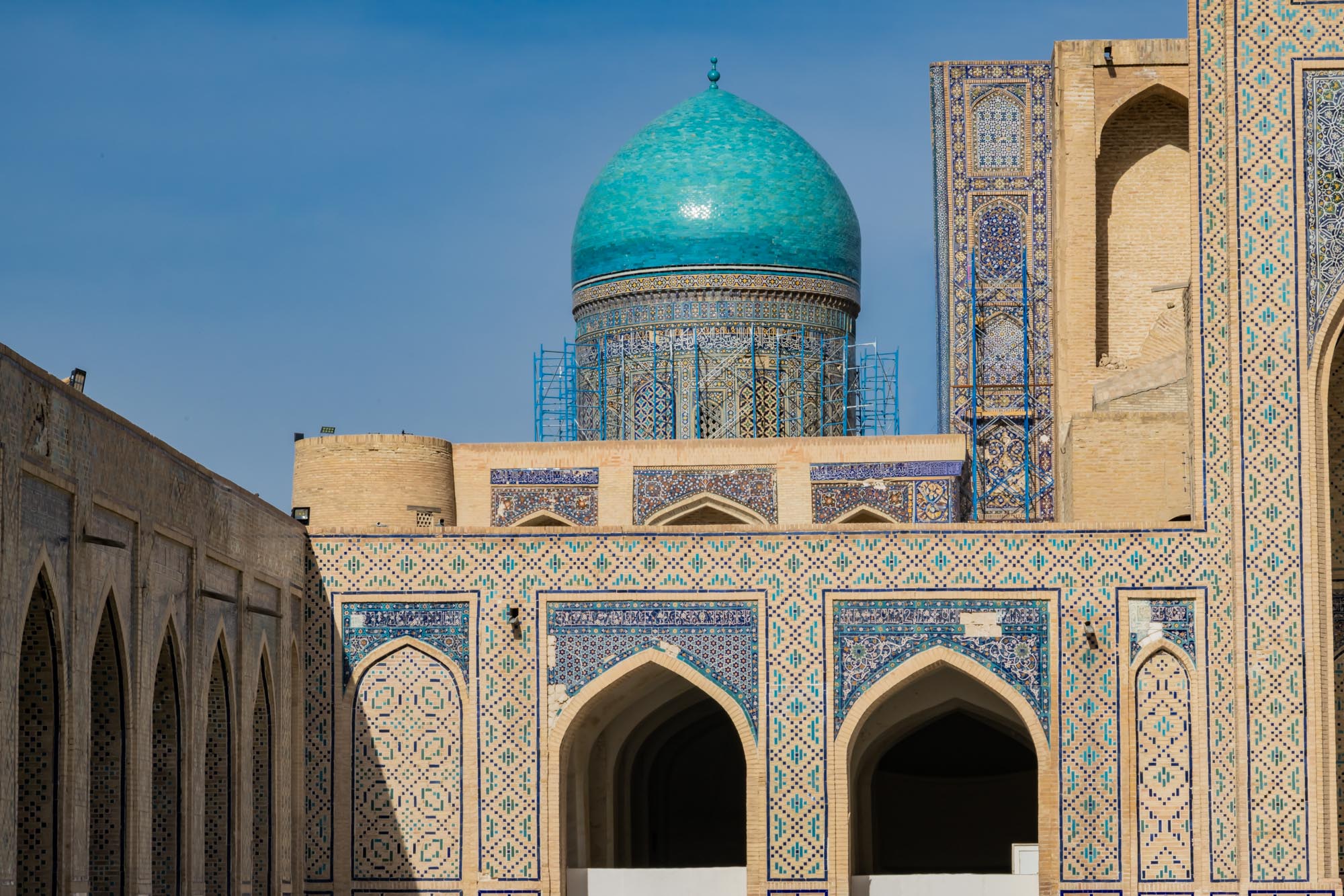 - Spätere Restauratoren (19.–20. Jahrhundert, Emirat von Buchara und sowjetische Periode) – wiederholte Ausbesserungen und Sicherungen, vor allem an den Kuppeln und Arkaden.