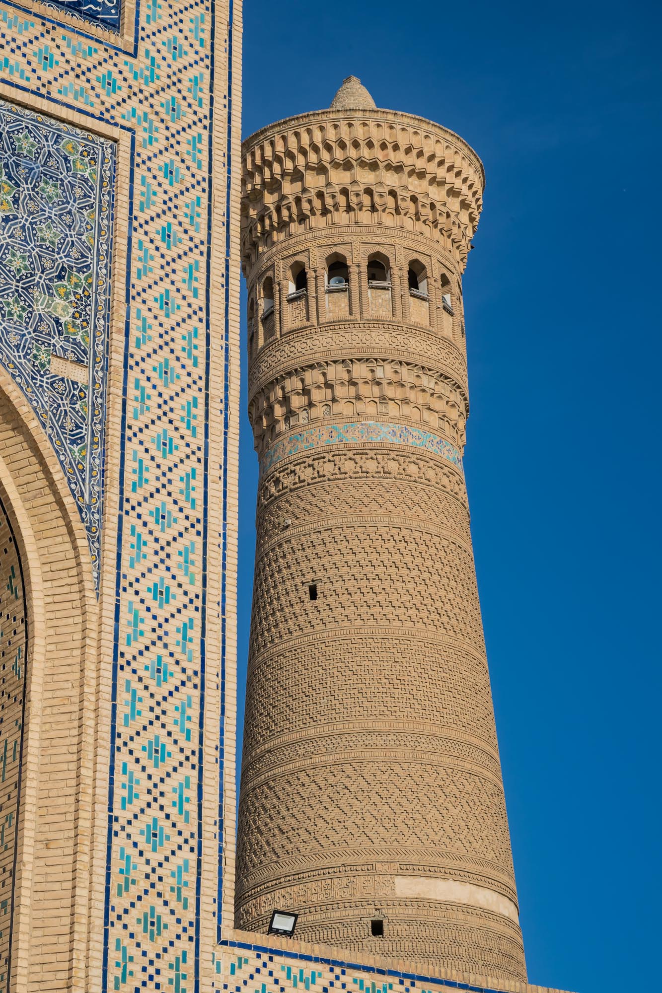 Ein besonders prägendes Element ist der Minarettturm, der sog. Minaret Kalon (oder Kalajan), der 1127 während der Herrschaft von Arslan-Khan aus gebranntem Ziegel errichtet wurde. Dieses Minarett ersetzte einen früheren Turm, der vermutlich aus Holz bestand und eingestürzt war.