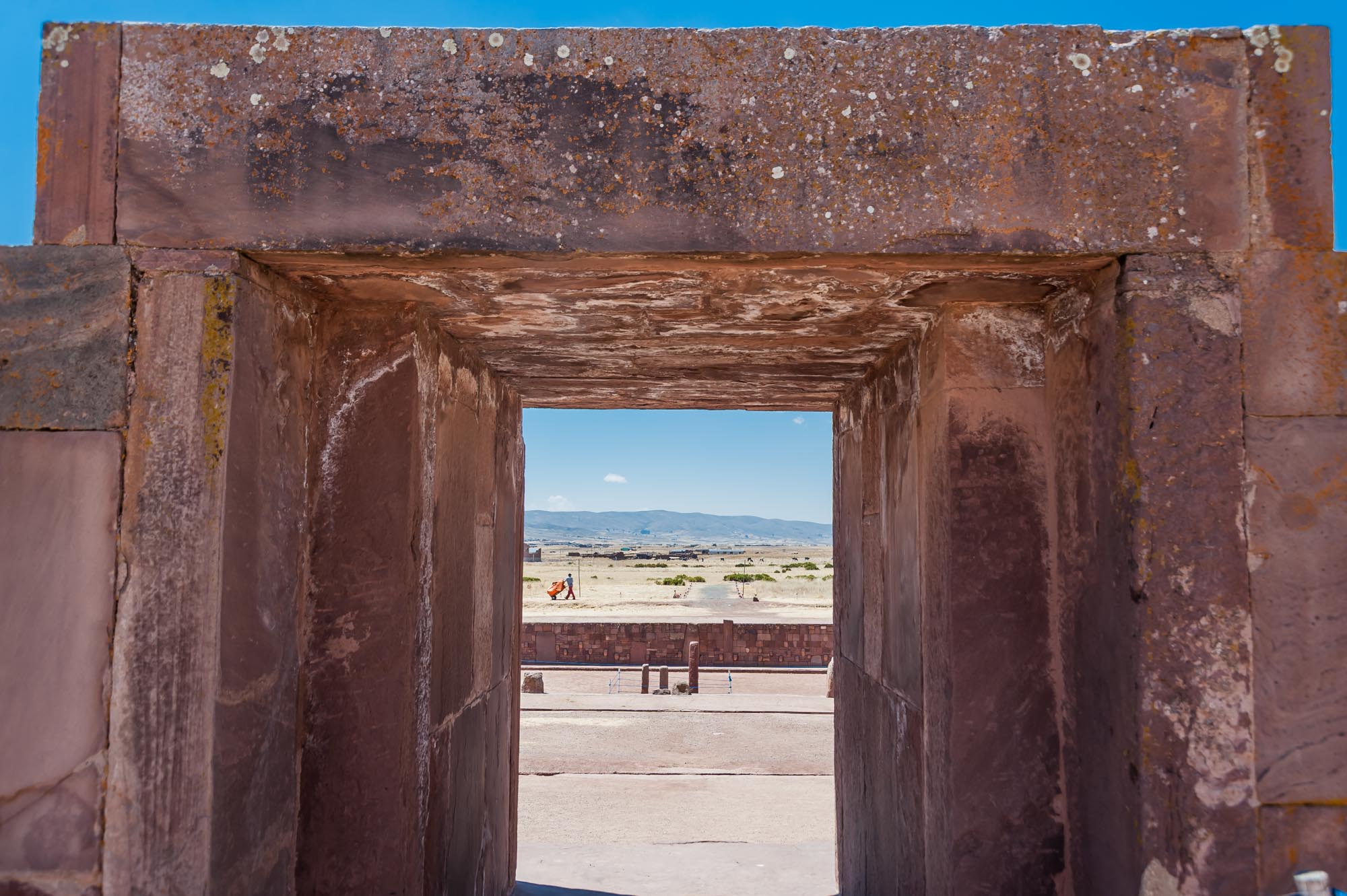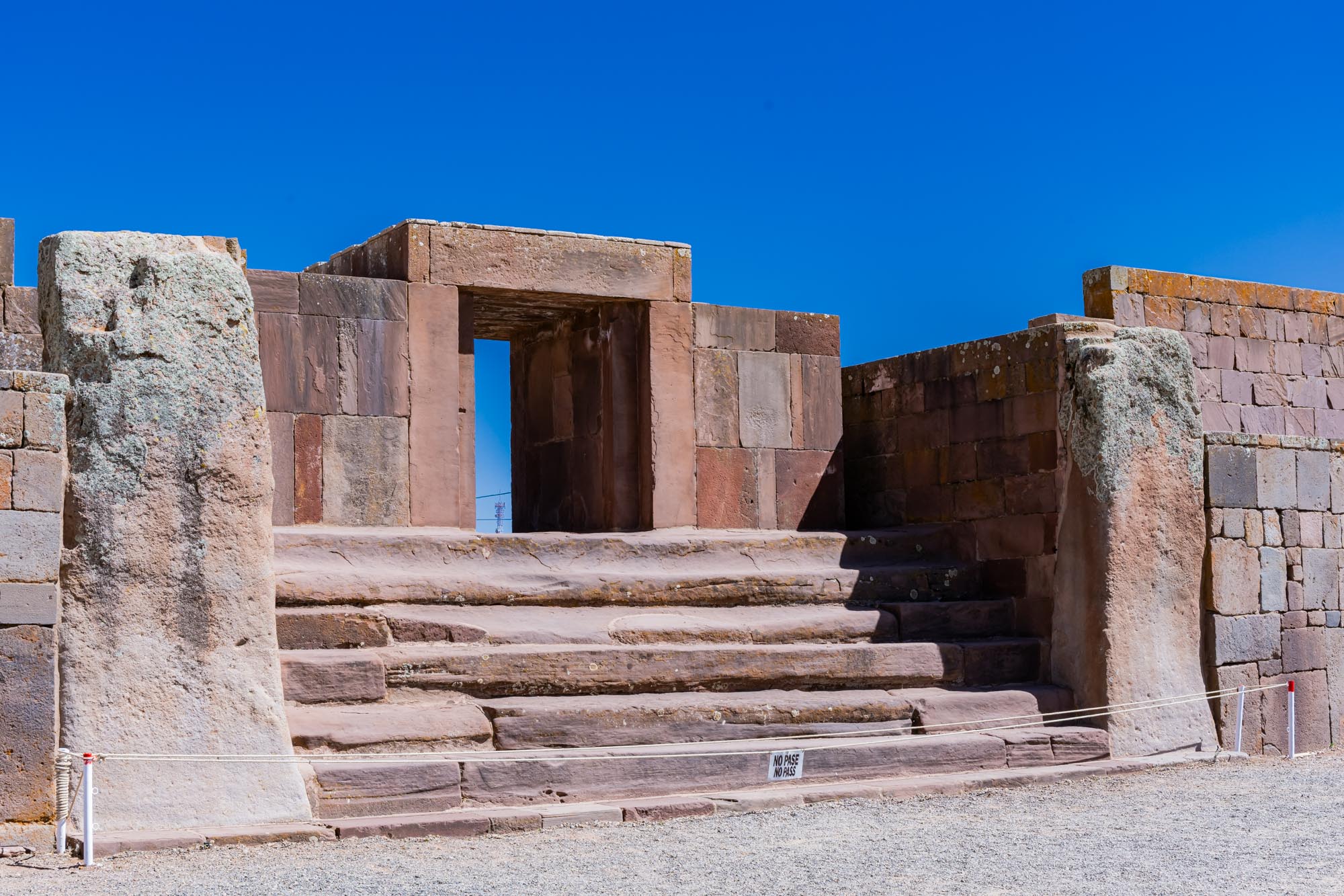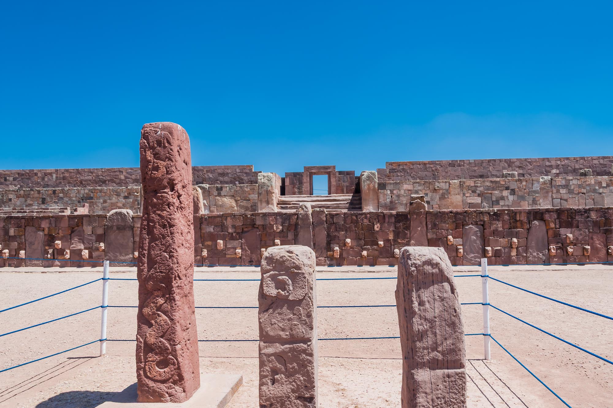 Der Zugang zum großen Tempel Kalasasaya war durch monumentale Tore gestaltet. Diese Tore dienten nicht nur als Eingänge, sondern auch als Übergänge von der Alltagswelt in den heiligen Bereich. Prozessionen führten durch diese Portale, die mit großen Steinblöcken gebaut wurden. Wer eintrat, spürte sofort, dass er nun in einen besonderen, rituellen Raum gelangte.