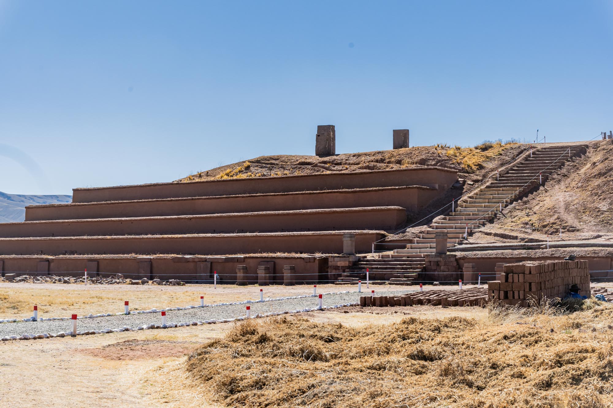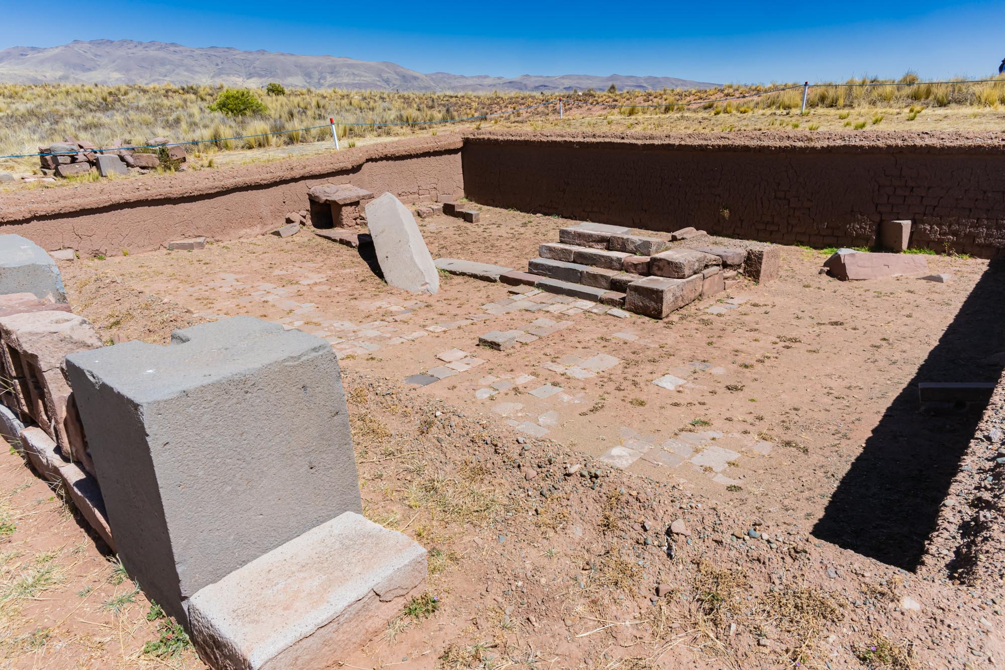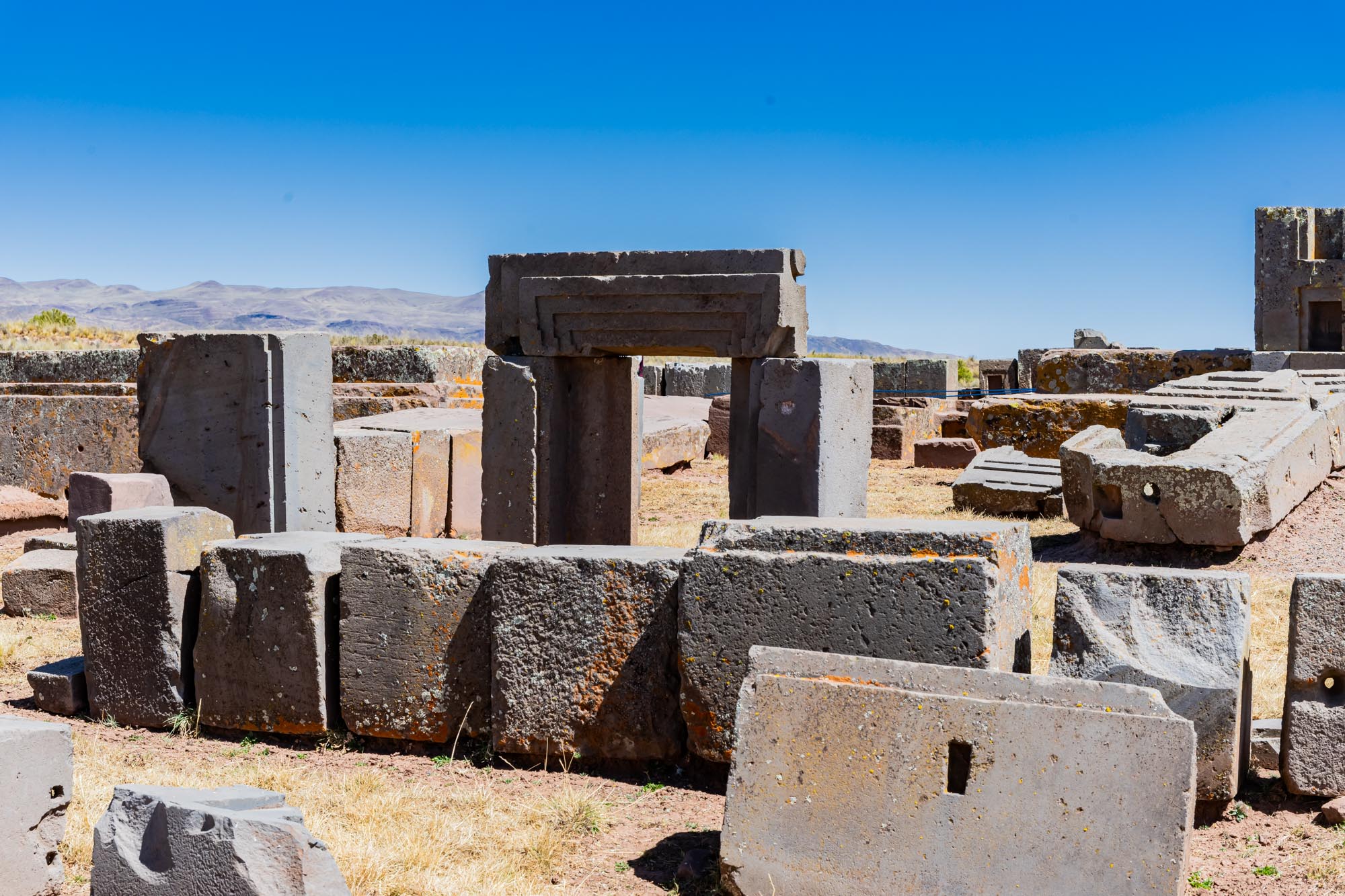 Der Zugang zum großen Tempel Kalasasaya war durch monumentale Tore gestaltet. Diese Tore dienten nicht nur als Eingänge, sondern auch als Übergänge von der Alltagswelt in den heiligen Bereich. Prozessionen führten durch diese Portale, die mit großen Steinblöcken gebaut wurden. Wer eintrat, spürte sofort, dass er nun in einen besonderen, rituellen Raum gelangte.