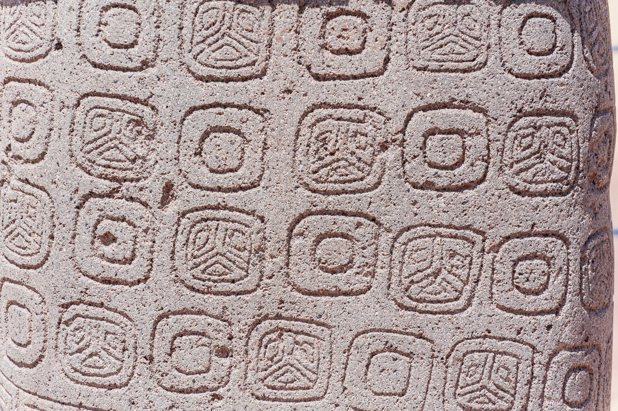 Der Ponce-Monolith ist aus Andesit gefertigt und sehr fein gearbeitet. Er zeigt viele Symbole, darunter Tränenmotive, Gürtelverzierungen und Darstellungen von Tieren. Seine kunstvolle Gestaltung macht ihn zu einem der wichtigsten Beispiele für die Steinmetzkunst von Tiwanaku.